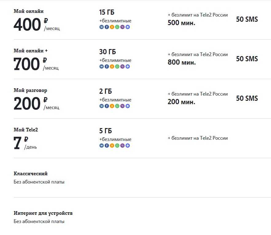 Мой онлайн плюс. Абонентская плата составляет 700 рублей, но за эти деньги компанией предлагается 30 гигабайт. Tele2 LTE распространяется на территории России. Общение в соцсетях не уменьшает трафик, и оно не лимитировано.