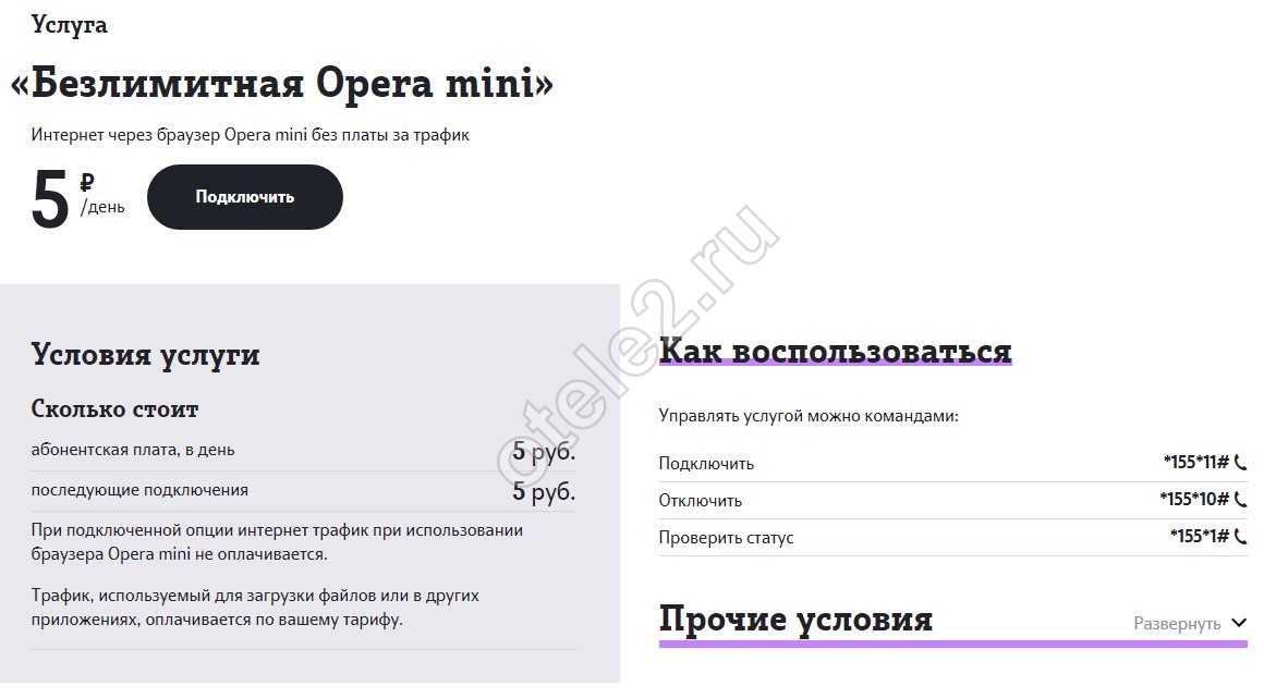 - Сколько стоит безлимитный интернет на Опера мини Теле2 — 5 рублей в день