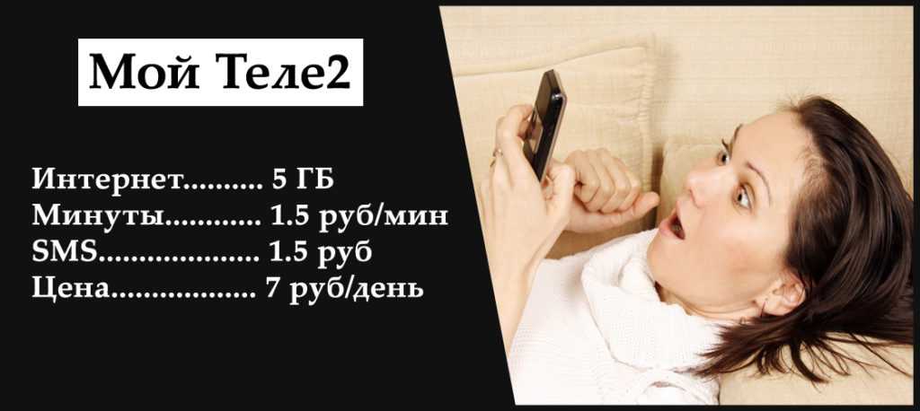 Мой Теле2. В отличие от двух предыдущих тарифов, плата производится не помесячно, а ежедневно (в размере 7 рублей). Интернет предоставляется в минимально достаточном для серфинга и общения объеме – 5 гигабайт. Если это необходимо, пакет может быть расширен до 7 Гб. Каждый день придется тратить еще 6,5₽. В первый день она снимается в момент подключения, а в последующие – суммируется с абонентской платой. Итого доплата за месяц составляет 195 рублей. При отсутствии денег на счете доступ будет приостановлен.