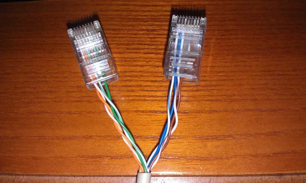 Видно, что на втором штекере провода поменяны местами, отсюда и название – кроссовер.