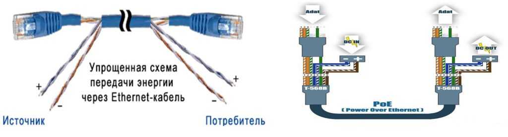 Такая схема позволит помимо информационного сигнала передавать питающее напряжение на коммутатор, роутер или любое другое устройство. Это избавляет от необходимости покупать отдельный шнур питания. В распиновке разъема RJ-45 синий и коричневый провода используются для подачи электричества. Вы спросите меня, где это нам полезно? Ответ: при установке видеонаблюдения подавать электричество на коммутатор. Многие из них рассчитаны на питание от разъема RJ-45. И т.п.