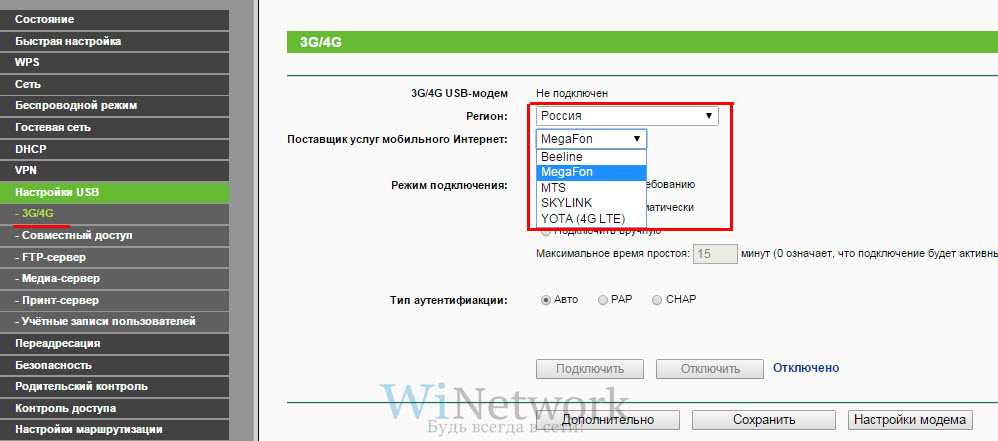 Отключение режима модема
