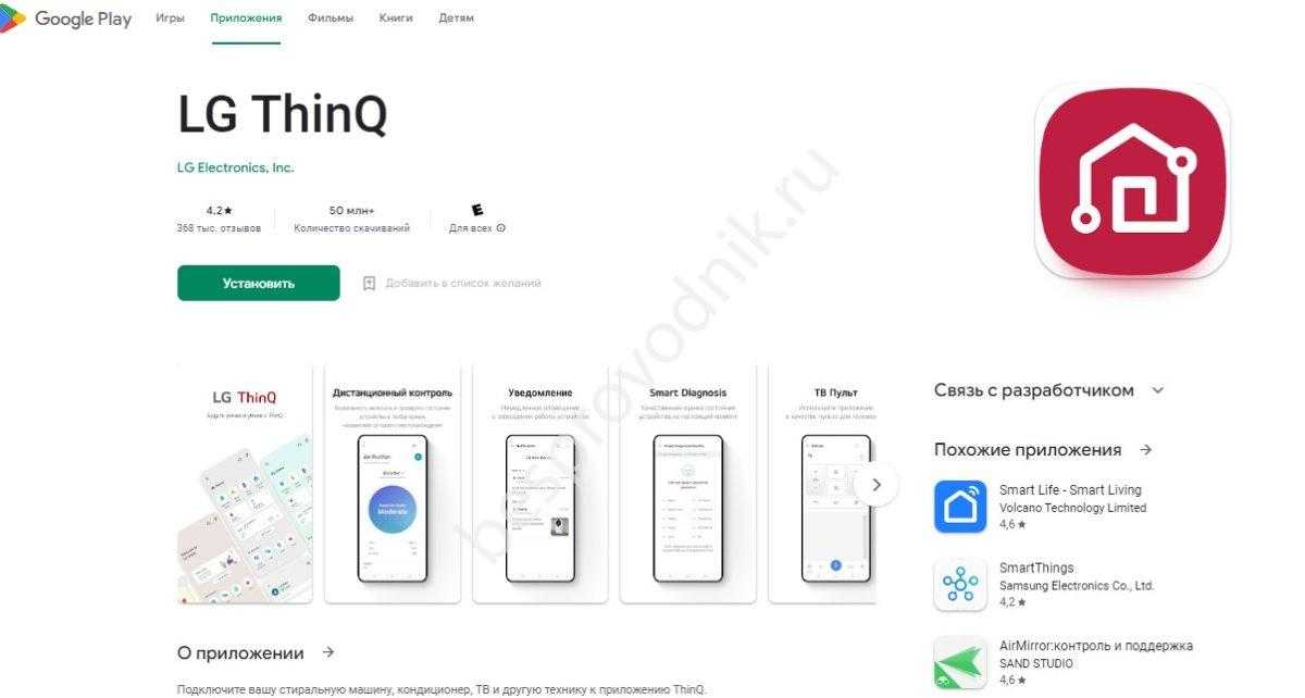 Скачайте и установите на смартфон приложение ThinQ. Оно есть в свободном доступе и в Play Market, и в AppStore. Запустите софт;