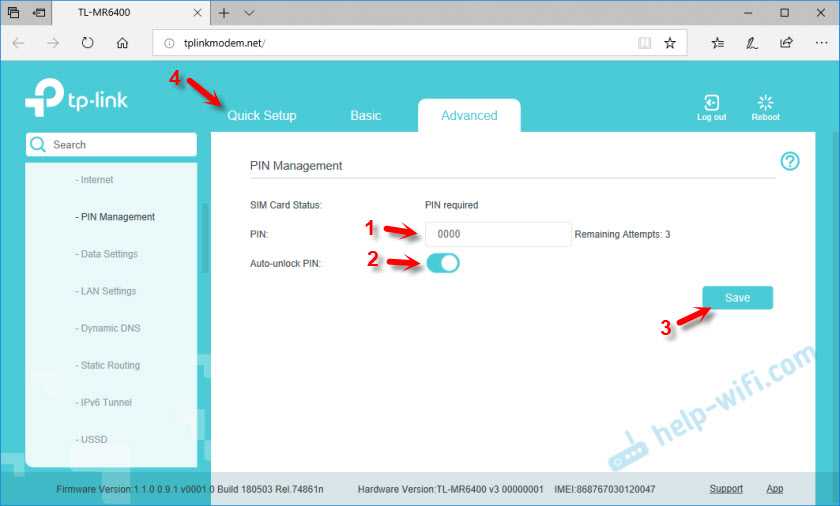 Вводим PIN-код (обычно он указан в документации к самой карте) и ставим переключатель возле «Auto-unlock PIN» чтобы роутер в дальнейшем сам смог вводить этот PIN-код. Нажимаем «Save» и возвращаемся к быстрым настройкам нажав на «Quick Setup».