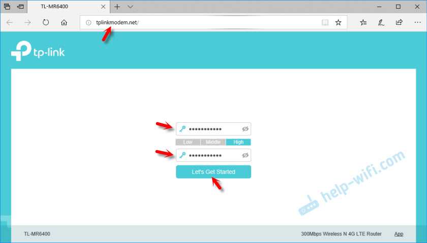 Первым делом нужно установить пароль на роутер (этот пароль нужен для защиты настроек роутера). Придумайте пароль и укажите его два раза. Обязательно запишите пароль, чтобы не забыть его. Его нужно будет вводить каждый раз, когда будете заходить в настройки TL-MR6400.
