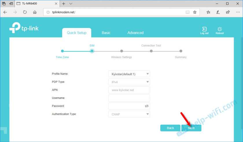 Вход в web-интерфейс TL-MR6400 и быстрая настройка