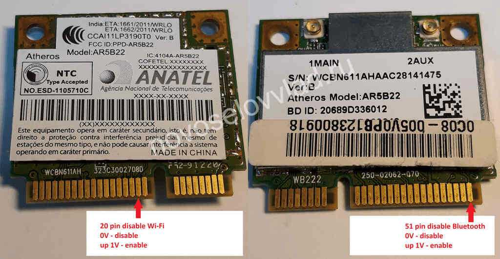 Модификация схемы включения Wi-Fi и Bluetooth в ноутбуке с разъемом M.2 (NGFF).