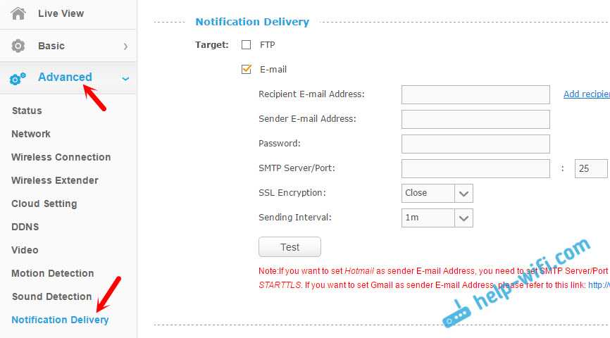 Выше я уже писал о такой возможности. Как только камера обнаружит какое-то движение, или звук, сразу отправит вам уведомление на электронную почту.