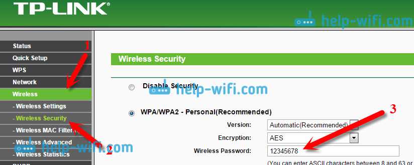 Что бы посмотреть установленный ключ, перейдите на вкладку Wireless (Беспроводной режим) — Wireless Security (Защита беспроводного режима). В поле Wireless Password (Пароль PSK) будет указан пароль.