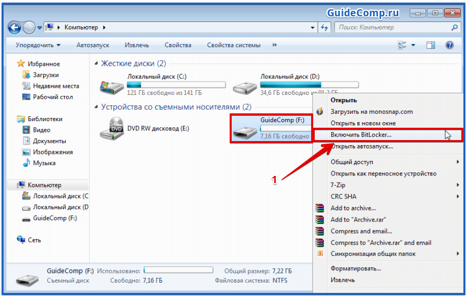 Установка пароля на флеш-накопитель стандартными средствами Windows 7