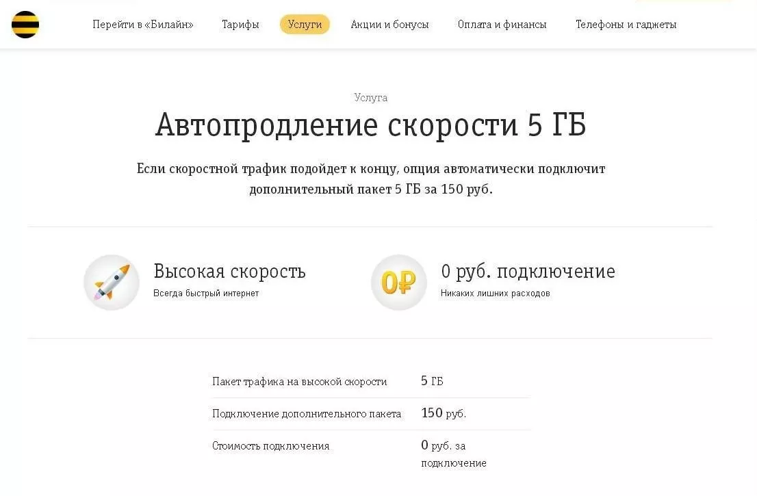 Автопродление скорости Билайн: команда для подключения 5 ГБ