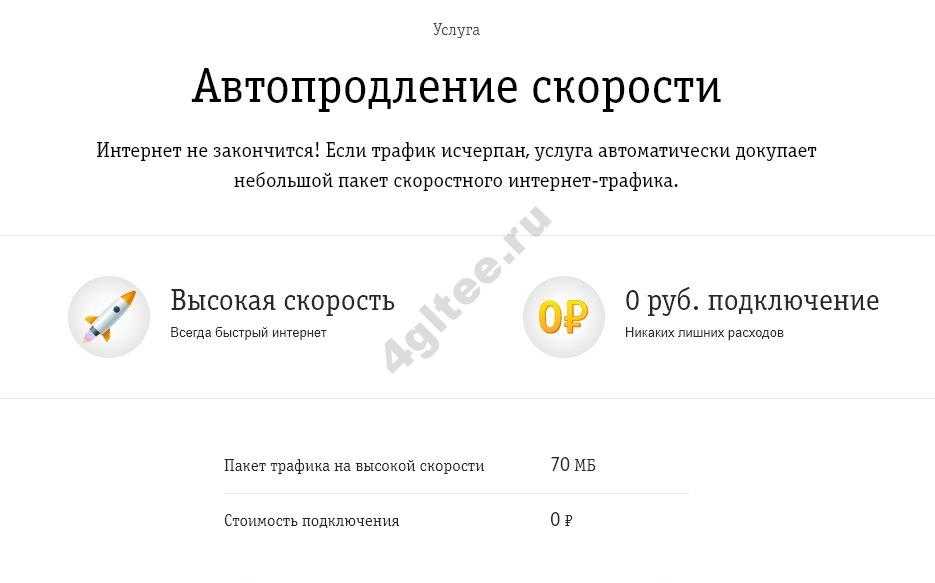 Тем, кому недостаточно 3 ГБ, могут использовать функцию «Продли скорость» 4 ГБ. Быстрая команда для продления скорости: *115*22#. Ещё один вариант, как пополнить трафик на 4 ГБ – позвонить на . На сайте компании можно узнать стоимость опции для конкретного региона.