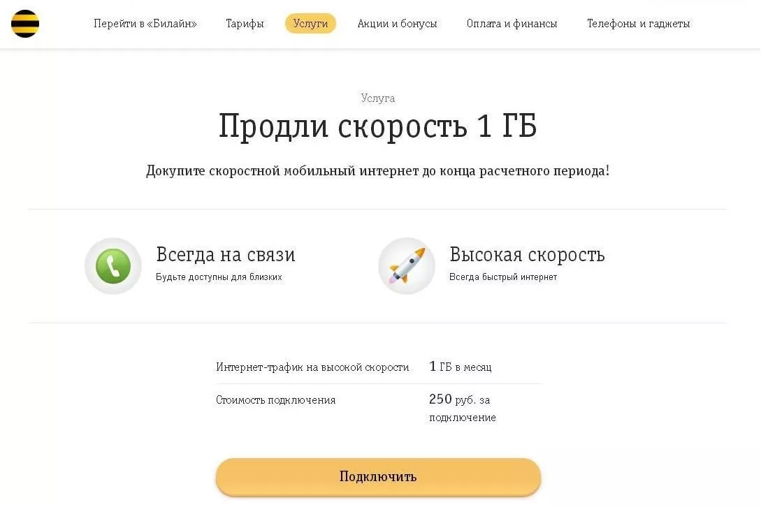 Дополнительная инструкция: как подключить услугу Билайн «Продление скорости на 1 Гб»?