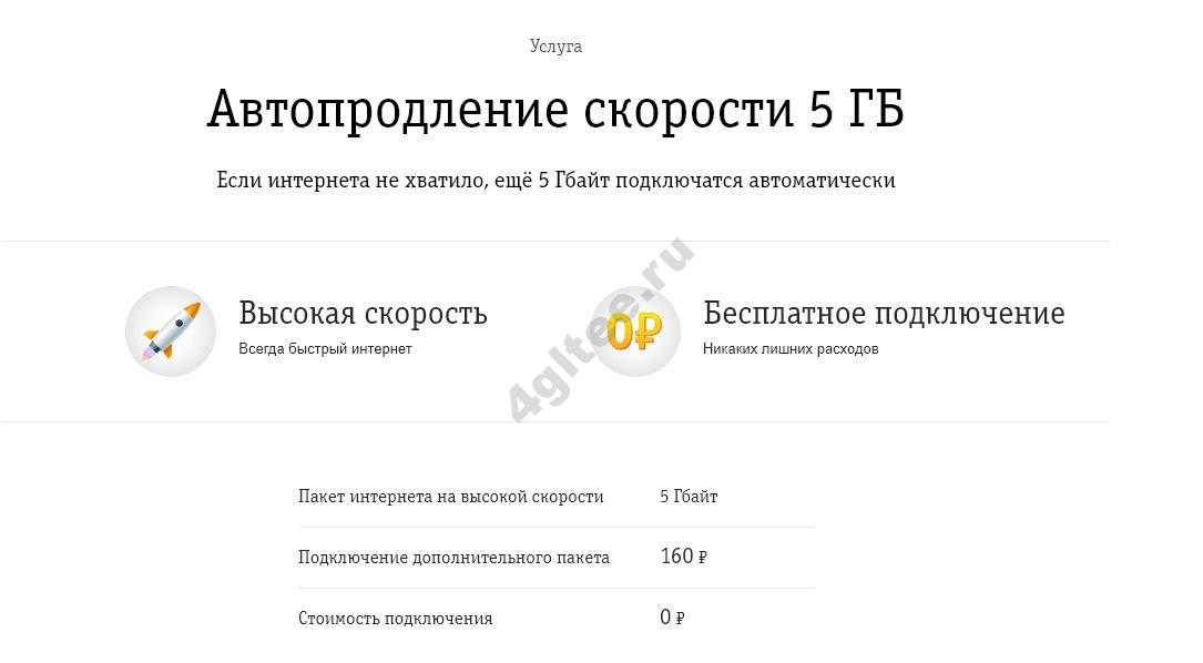 “Автопродление скорости 5 Гб” — цена 5 Гб трафика составляет 160 р.