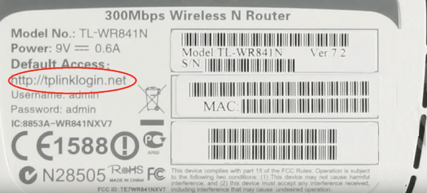 Прежде всего, определим аппаратную версию устройства. При этом не имеет значения, какая у вас модель (TL-WR841N или TL-WR841ND). Проще всего сделать так: переверните роутер и внимательно изучите этикетку, наклеенную на корпусе. Место, где указана аппаратная версия, на рисунке обведено красным овалом.