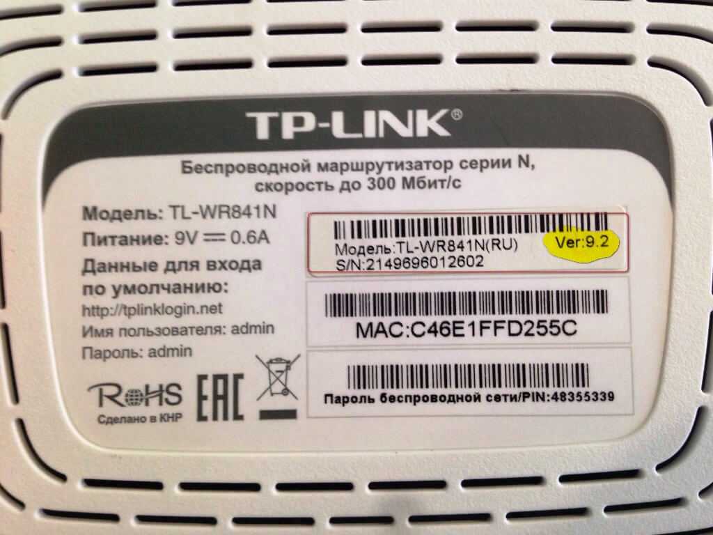 Мы видим, что на наклейке написано Ver 9.2, следовательно, у нашего роутера аппаратная версия 9.2. На этом рисунке изображена устаревшая модель, так как в настоящее время у Tp-link разработана уже 12 аппаратная версия.