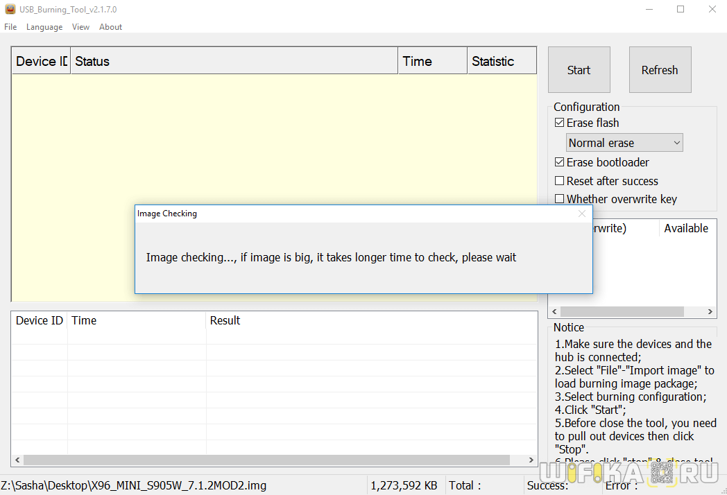 - Выберите прошивку: В программе Amlogic USB Burning Tool выберите скачанную прошивку для X96 Mini на Android TV 9. Убедитесь, что путь к прошивке указан правильно.