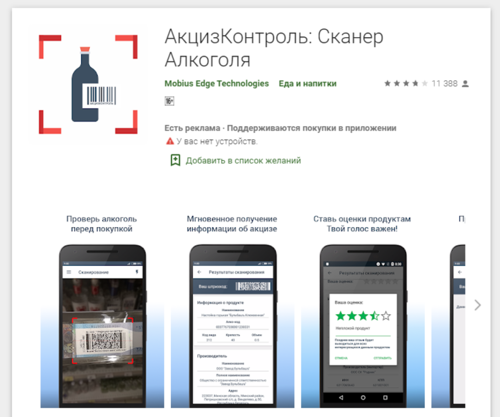 Лидером среди программ-сканеров алкоголя является небольшое мобильное приложение «АкцизКонтроль». Утилита доступна только для мобильных устройств Android, скачать её можно в Google Play бесплатно.