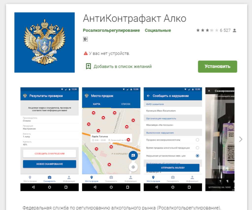 Программа называется «Антиконтрафакт Алко», имеет высокие рейтинги. Владельцы Андроид-устройств могут найти ее в Play Market , обладатели Айфронов – в App Store, ну а те, кто используют телефоны на базе Windows – обнаружат приложение в Windows Phone.