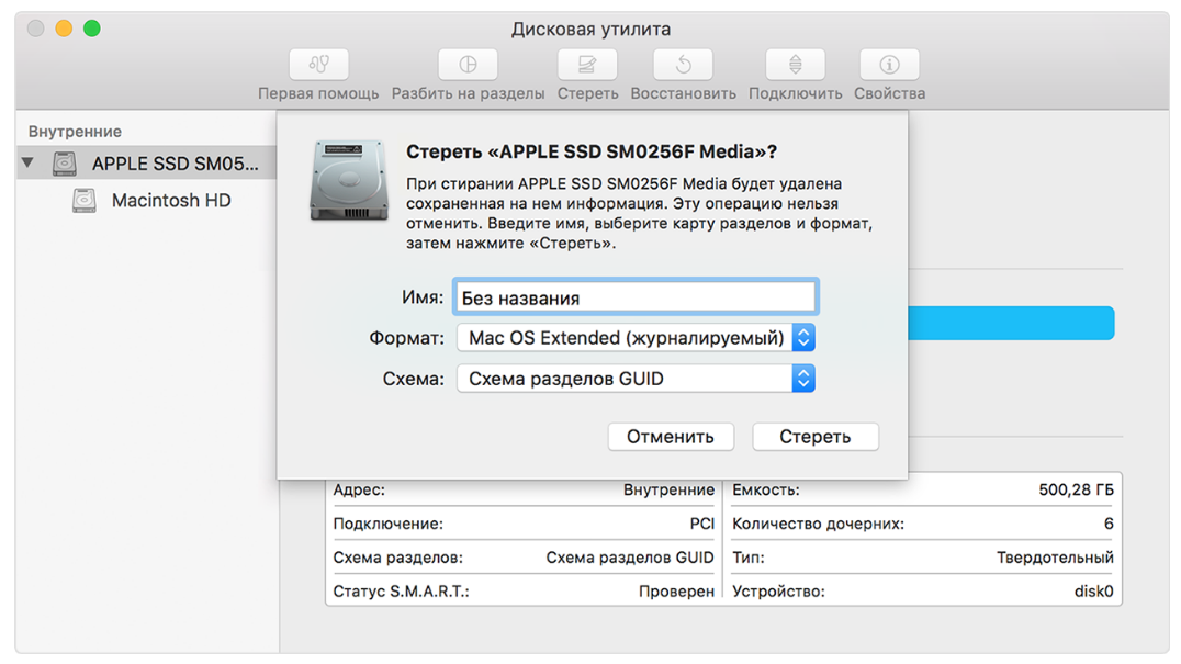 - Шаг 4: Укажите название (на Ваше усмотрение) и формат (следует выбрать Mac OS Extended);