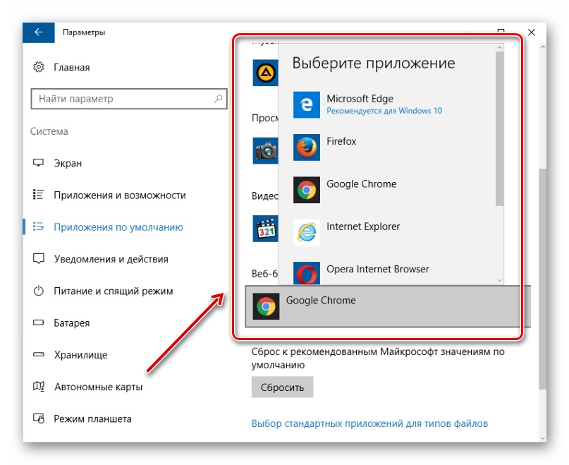 При желании можно в любой момент изменить браузер. Для этого необходимо выполнить описанные выше действия и выбрать другую программу из списка предложенных.