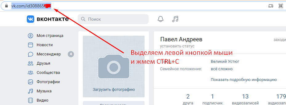 Таким образом пользователь скопировал ссылку на браузерной версии ВК. Если пользователь не может ориентироваться в нем, то стоит посмотреть в этом видео алгоритм входа