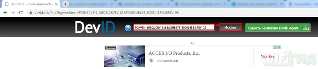 - Далее вы увидите три ссылки, переходите на любой сервис. Я не стал приводить конкретный сайт, так как на одном или другой может быть, а может и не быть драйвера, но чаще он находится сразу. Заходим на любой и в поисковую строку вставляем скопированный ID и нажимаем по кнопке «Искать».
