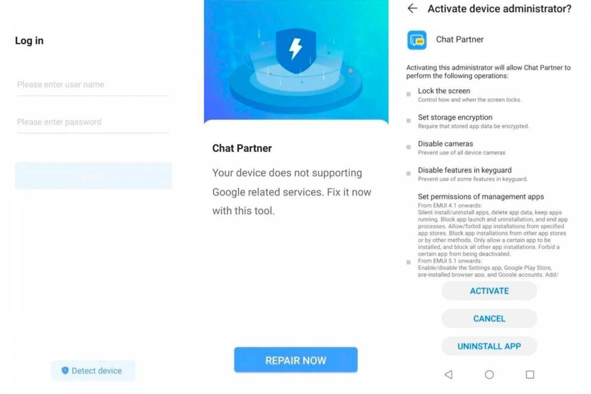 Chat Partner устанавливает Google Play на телефон Huawei