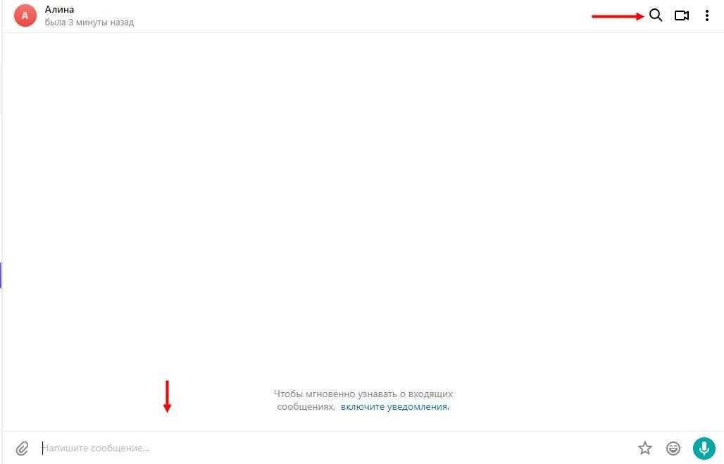 - Через лупу осуществляется поиск по истории сообщений;