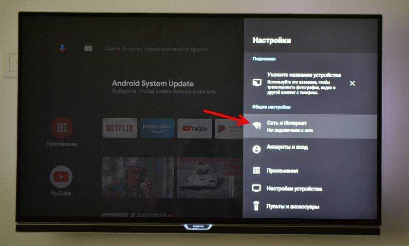 Подключить приставку к беспроводной сети можно в разделе «Сеть и Интернет».