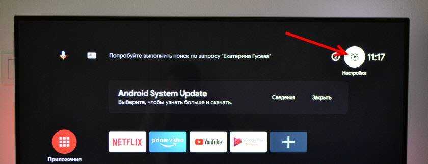 Чтобы перейти в настройки на Ми ТВ Стик выберите кнопку в виде шестеренки.