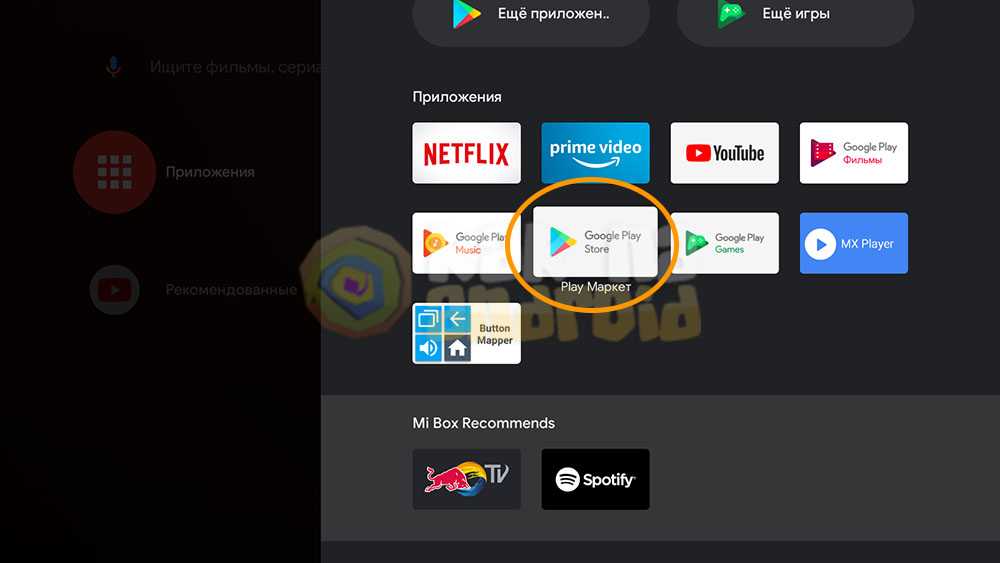 Для того, чтобы скачать новое приложение на приставку Smart TV, необходимо, чтобы на ней был установлен Google Play Store. Эта программа входит в стандартный пакет приложений для Android, который предустановлен на любой международной версии даже самой китайской приставки. Наша Xiaomi Mi Box S не исключение.