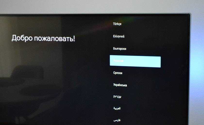 Для соединения нужно нажать на центральную кнопку. После того как пульт будет соединен с Mi Box по Bluetooth, нужно выбрать язык.