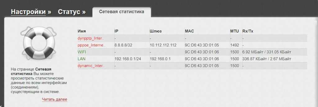 У D-Link все тут достаточно скудненько, но какую-то информацию можно посмотреть.