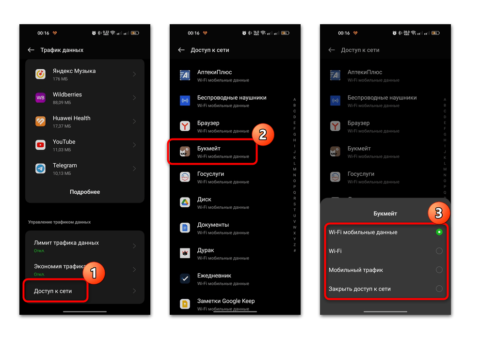 В предыдущем окне «Трафик данных» есть возможность установить ограничение для потребления трафика. В подразделе «Доступ к сети» можно выбрать определенный вид подключения (мобильный интернет или Wi-Fi), которое будет использовать то или иное приложение. Так, например, если вы отключите возможность потреблять мобильный трафик для браузера, то пользоваться им можно будет только при подключении к беспроводной точке доступа Wi-Fi. Кроме того, можно вовсе закрыть доступ к сети для определенного софта.