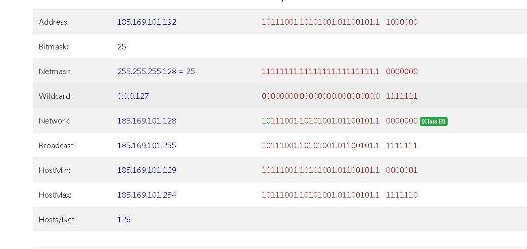 Поиграем с айпи 185.169.101.192 и маской 25 — 255.255.255.128