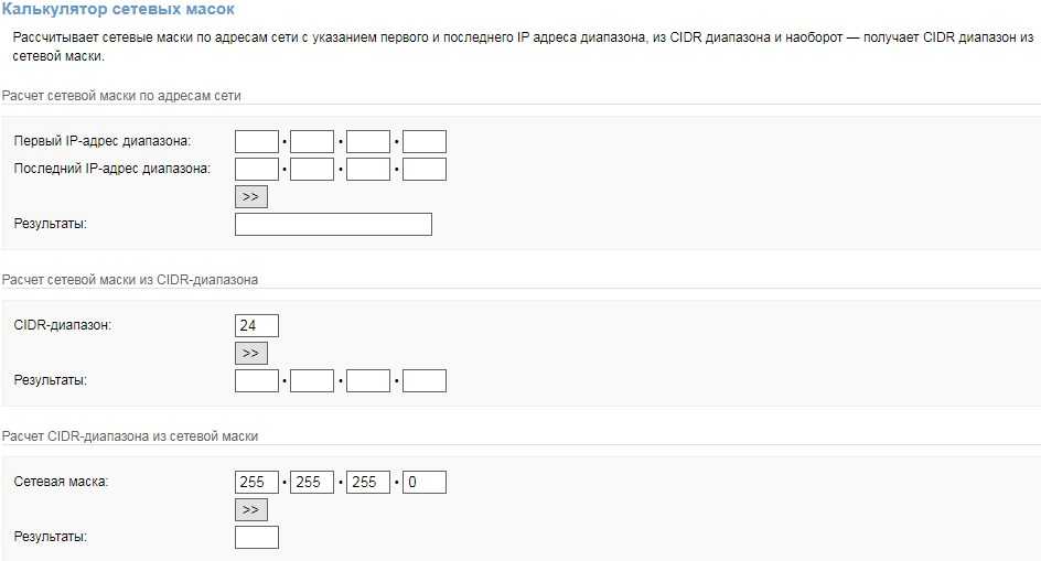 А вот этот калькулятор позволяет непосредственно рассчитать сетевые маски по: