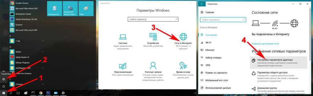 - Теперь нажмите «Сеть и Интернет», «Настройка параметров адаптеров».