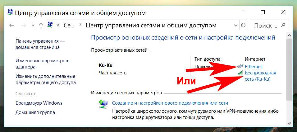 В окне с правой стороны клацаем левой клавишей мыши на ярлыке «Ethernet» если вы подключены проводом, смотрите статью настройка проводного интернета на компьютере или ноутбуке. Если у вас соединение беспроводное WiFi, тогда «Беспроводная сеть (название вашей сети)».