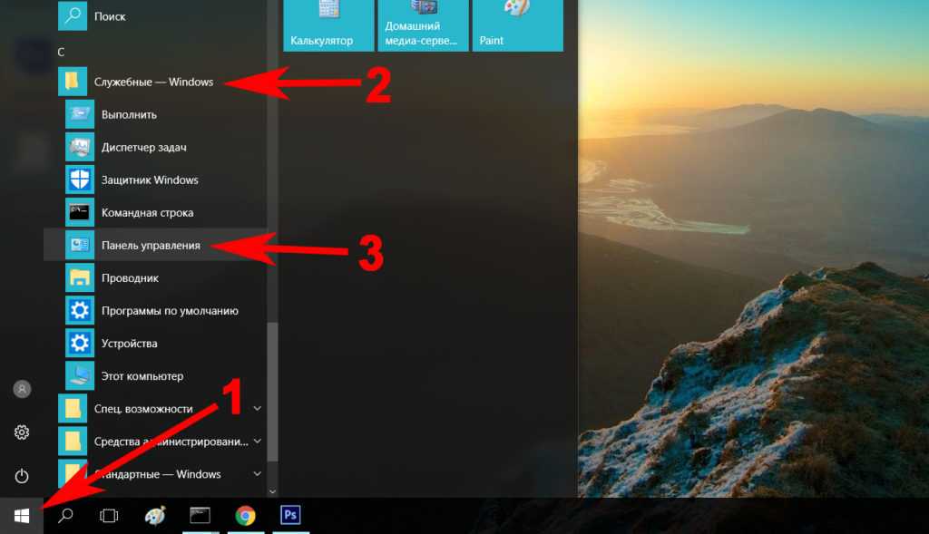 Заходим в «Пуск», из списка находим и раскрываем опцию «Служебные – Windows». Теперь выберите «Панель управления».