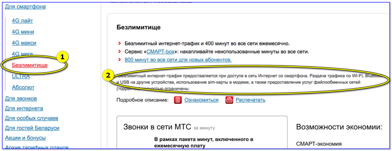 Примечание: т.е. может быть так, что ваш тариф позволяет безлимитно пользоваться интернетом с телефона, но не позволяет его расшаривать на др. устройства.