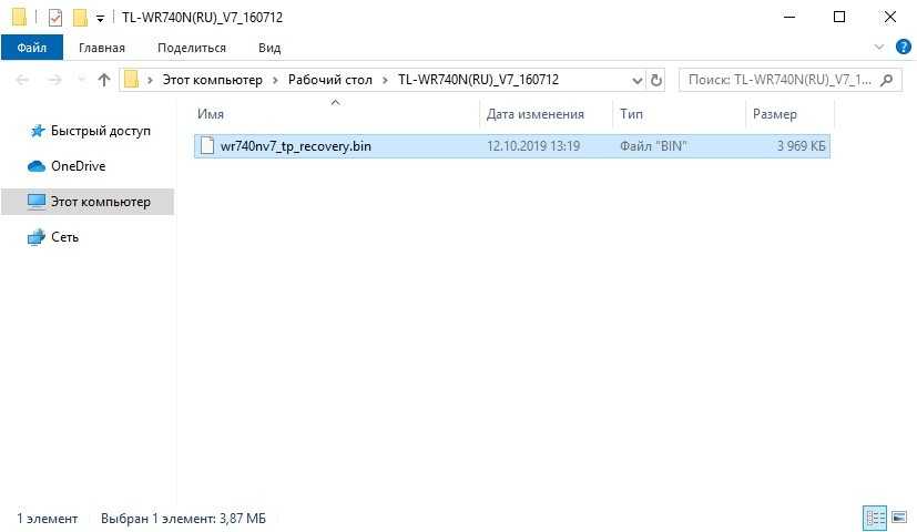 - Переименуйте файл в похожий формат с моделью роутера и словом tp recovery. Например, wr740nv7_tp_recovery.