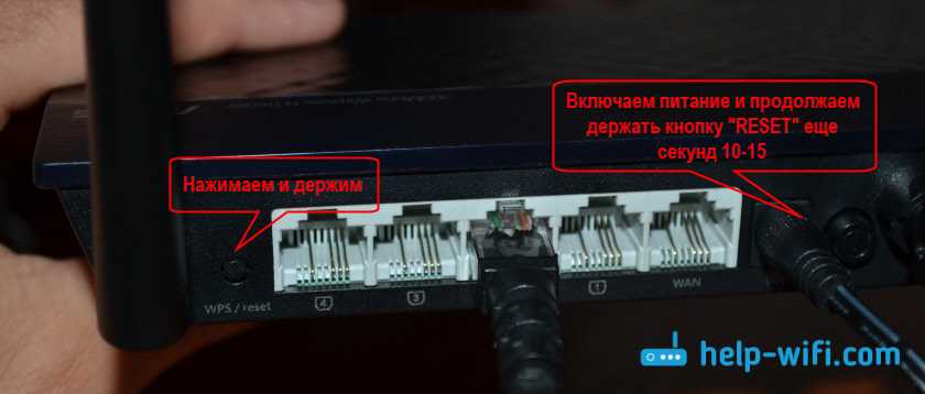- Нажимаем и держим кнопку «RESET». Обычно она подписана «WPS/reset».