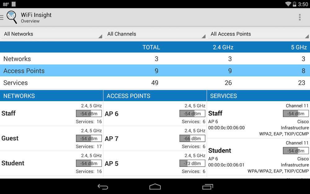 Данное приложение отображает конкретную информацию о работе Wi-Fi соединения, показывает наличие или отсутствие сбоев, а также даёт рекомендации по настройке устройства, повышения скорости сети.