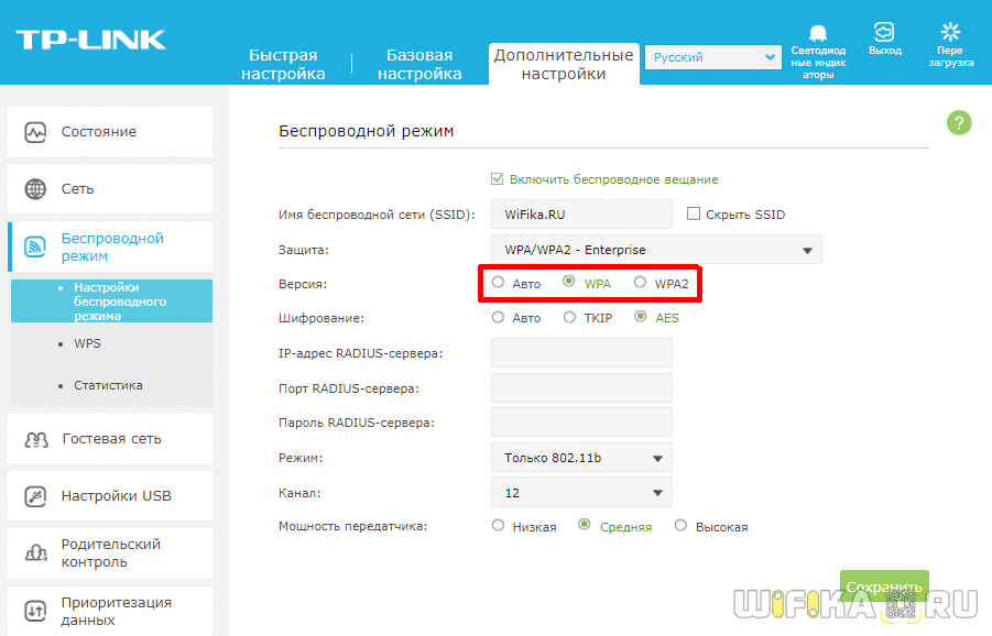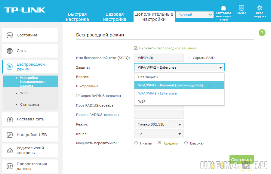 Защита беспроводного режима на маршрутизаторе TP-Link
