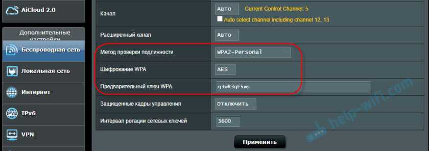 Используйте WPA2/WPA3 — Personal, или WPA2 — Personal с шифрованием AES. На сегодняшний день, это лучший и самый безопасный способ. Вот так настройки защиты беспроводной сети выглядит на маршрутизаторах ASUS: