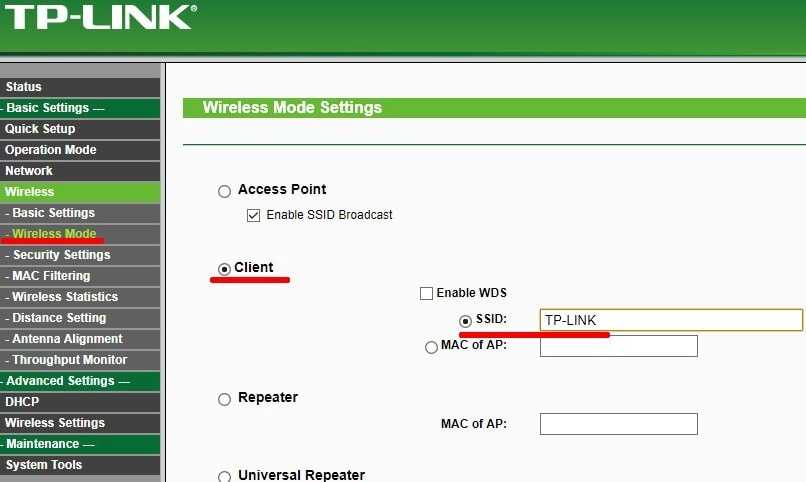 Одну из точек доступа настраиваем в режим AccessPoint, а другую в режим Client.