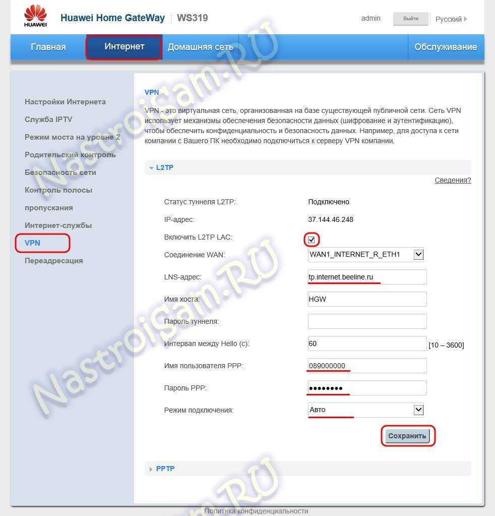 Подключение маршрутизатора Huawei к Билайн (L2TP)