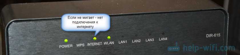 В некоторых случаях индикатор «Internet» горит обычным цветом. Например, зеленым, но нет подключения к интернету. Дело в том, что этот индикатор должен мигать, когда идет передача данных и все работает. А диод светится сразу после подключения кабеля. Так на D-Link DIR-615 и на множестве других моделей.