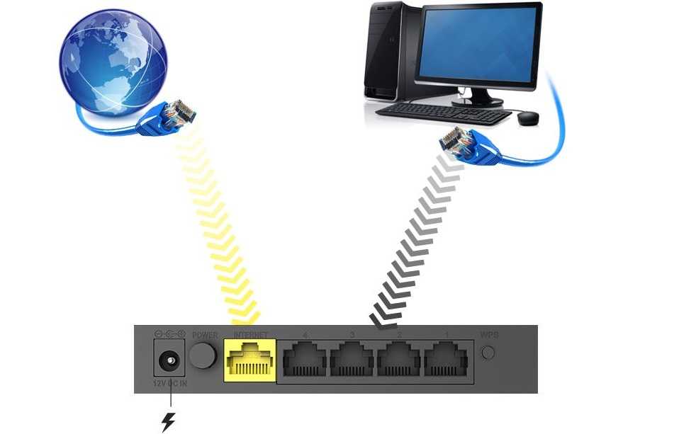 Подключение осуществляется с помощью проводов, находящихся в наборе с прибором. Среди них: кабель и блок питания на пять вольт, LAN кабель. В роутере есть семь функциональных разъемов (для питания, USB — вход, сетевое гнездо, LAN – гнезда). Кабель, который поставляется компанией – представителем услуг подключить к гнезду INTERNET. Провод, поставленный в наборе с роутером, присоединить к гнезду LAN на ПК, а другой конец в маршрутизатор (такая схема характерна для ПК без Wi-Fi адаптера). Если раздавать трафик посредством Wi-Fi волн, использовать LAN-провод нет нужды. Включить блок питания в розетку.